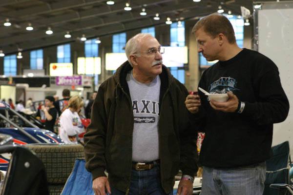 Jim, right, talks with Eric Kaufman of the 50 car about.........?