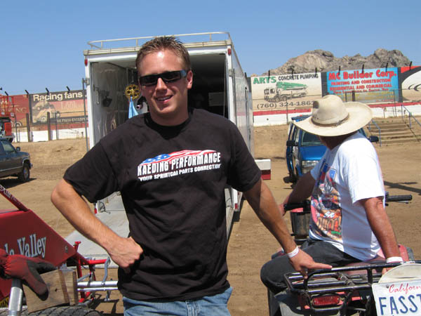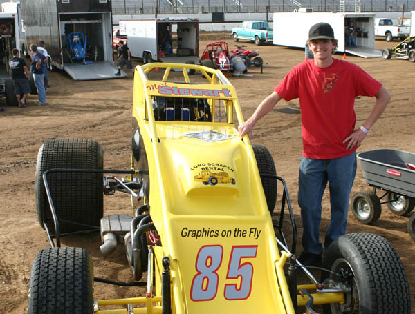 Matt Stewart poses with his "new" car. Matt ran 4th in his heat to transfer to the main where he ran 18th. Matt retired due to lack of money shortly after this.