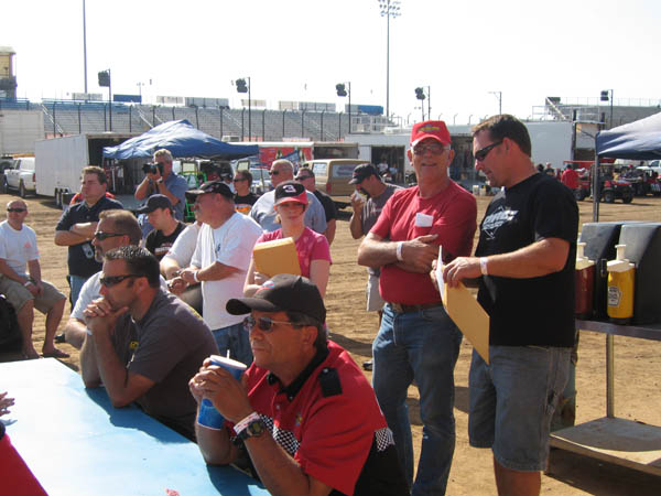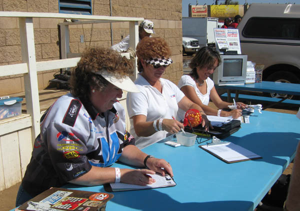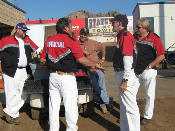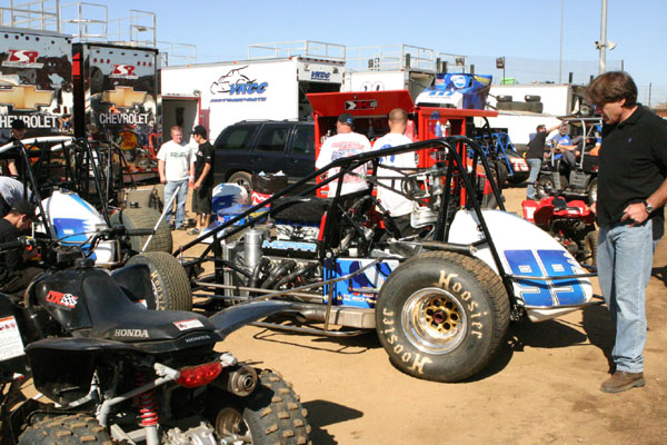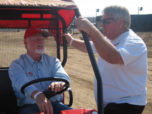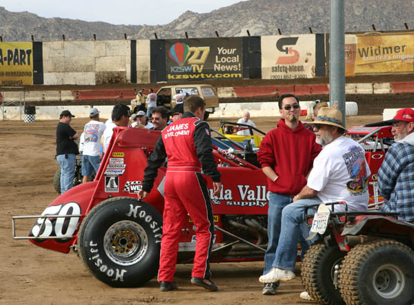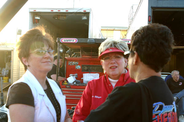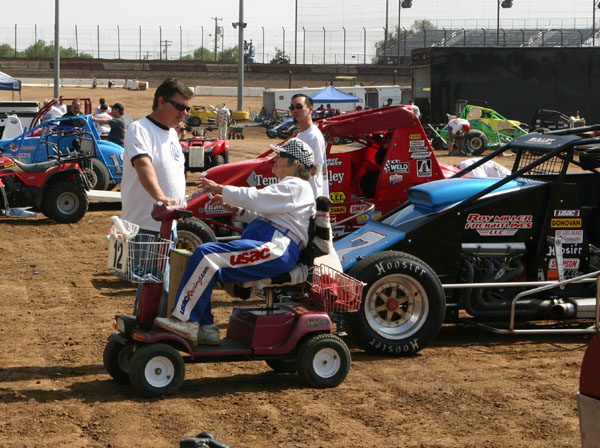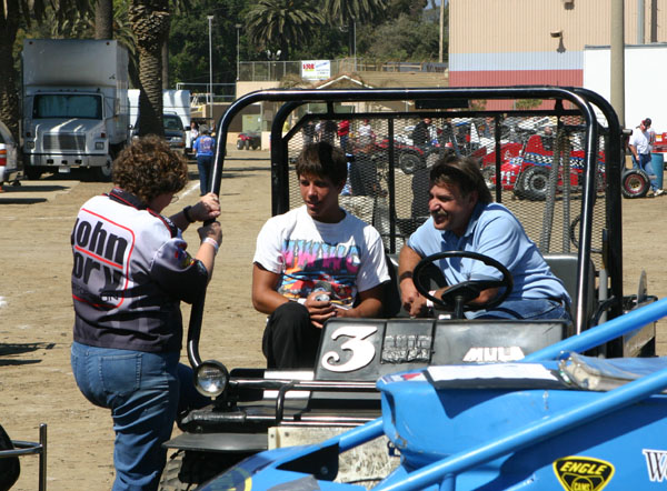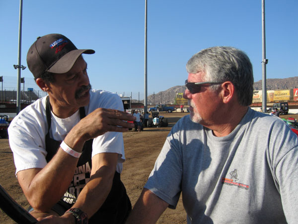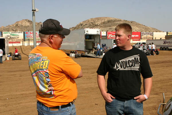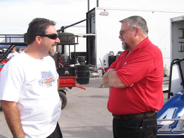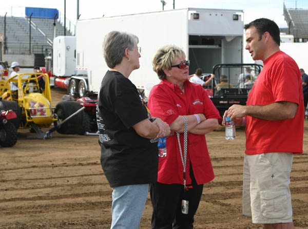 Evelyn Pratt visits with Mark Alexander about some USAC rule probably.