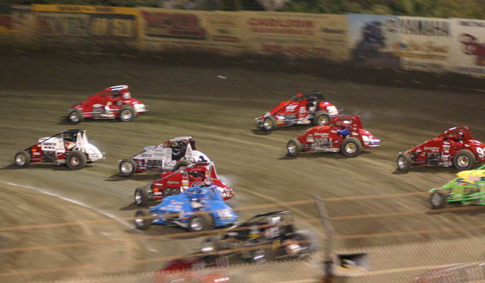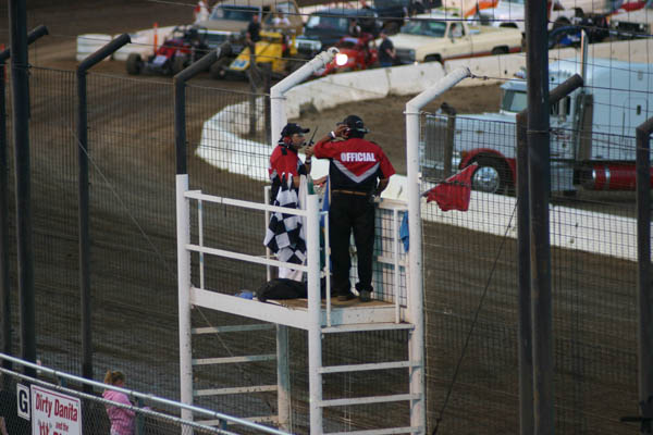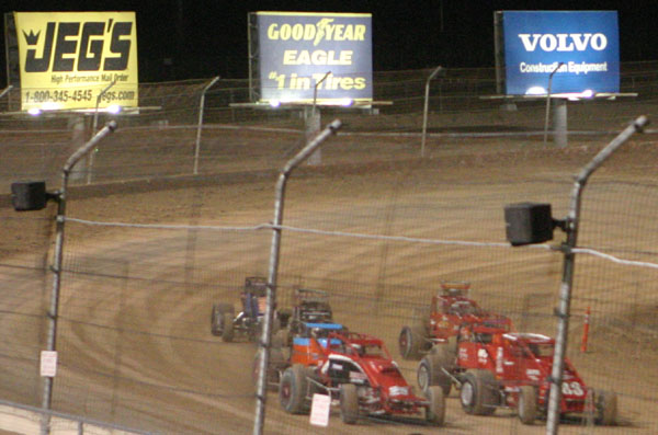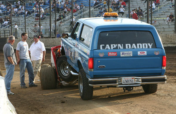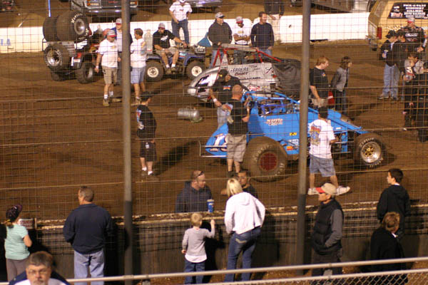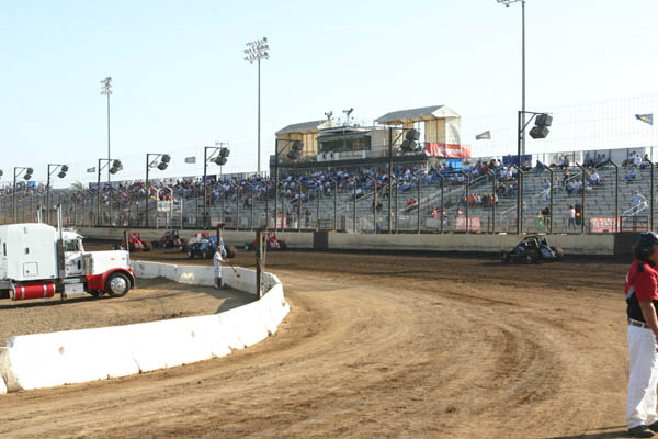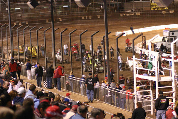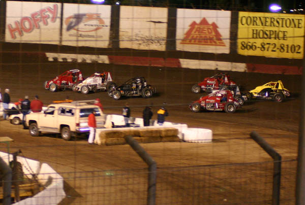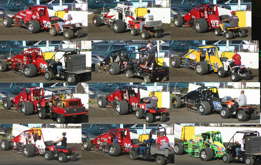 Which is this, either a stock car push starting a sprint car, a sprint car towing a stock car, a mirage or a figure 8 race. If it weren't for the stock cars and wreckers theire would be no sweet music on this night as no push trucks showed up.