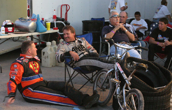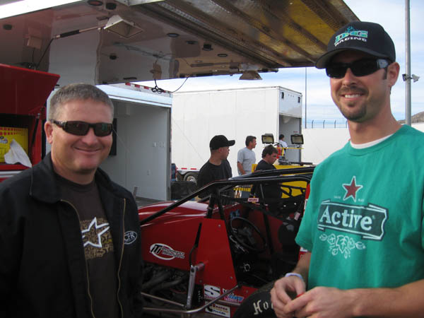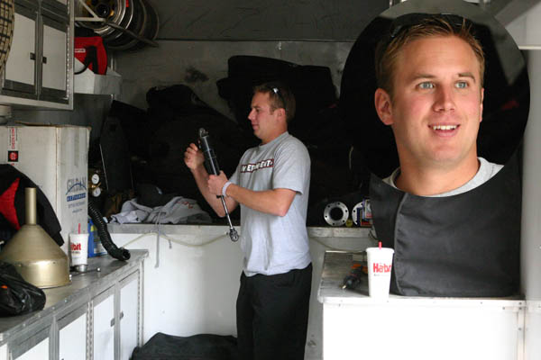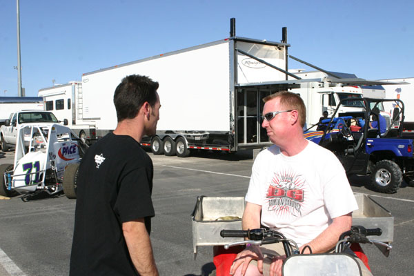 Wags visits with Damion Gardner. He looked like he would be tough in the main until he pulled over to the work area with a quiet motor.