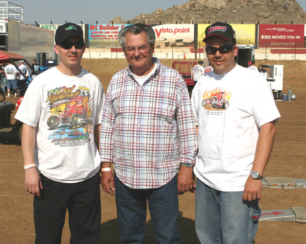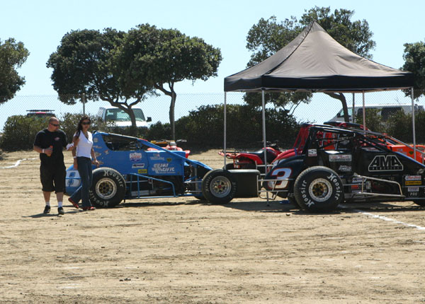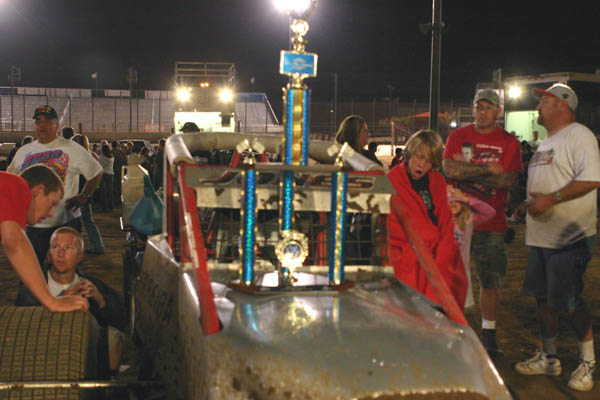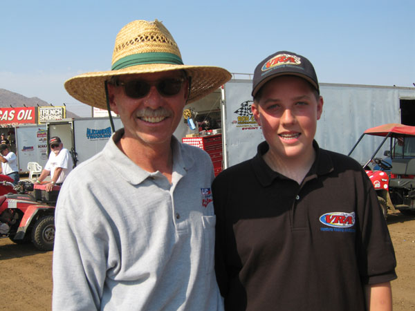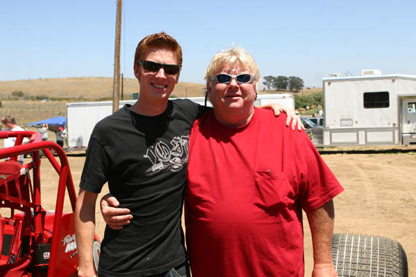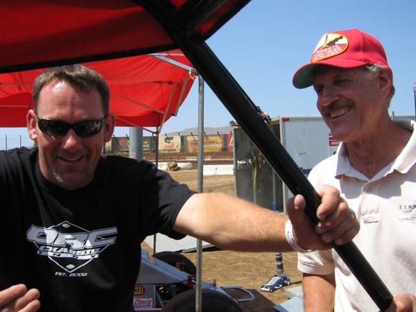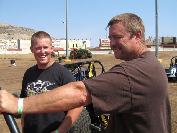David Cardey's dad chats beside the eventual runner-up car his son drove hard this week. Dynamite Dave, Dirty Danita's husband, was third quick and second in his heat before his best ever finish with CRA a rousing second.