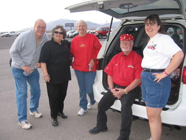 Bob Hawkins, Darleen Dils, Sonia Bandy, Wags and Tina Dils about to enter the pits.