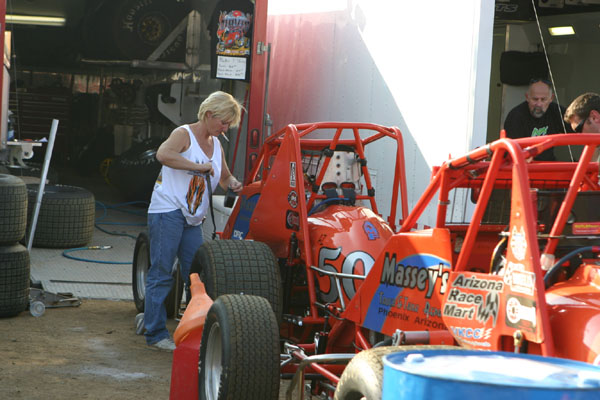 Carol Wolfe came in from Okieville for a few days. She and hubby Jim, former tire specialist for several sprint teams, moved to Okie City lasy year and are happily living the life in the midwest.