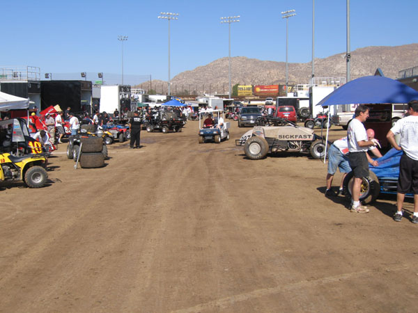 A big picture of the many pit area's ie drag strip, big 1/2 mile track and the dirt track.