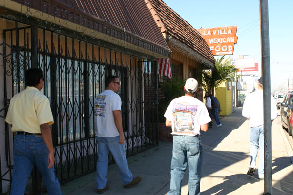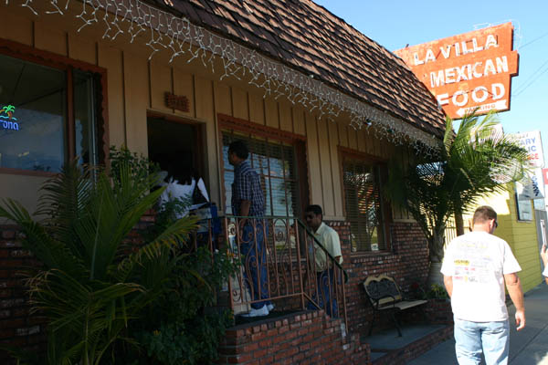 The day was a Friday and lunch was to be at the La Villa Restaurant in Gardena. Owned by Maria and John Gardner, the restaurant sponsors the # 4 race car owned by Mark Alexander and driven by Tony Jones. They won 8 races this past season, so 2007 looks good from here. I was in town to watch some High School basketball games and decided it would be fun to visit the place that took care of our Wagsdash chili this year. I went to Mike Clark's house and we headed on over to the restaurant.
