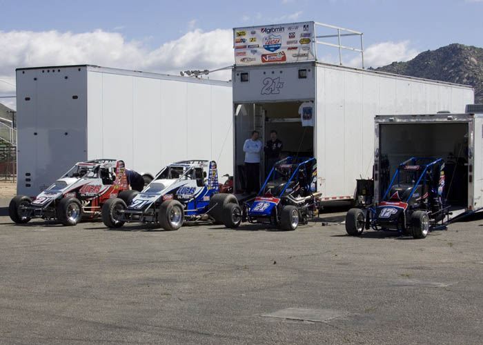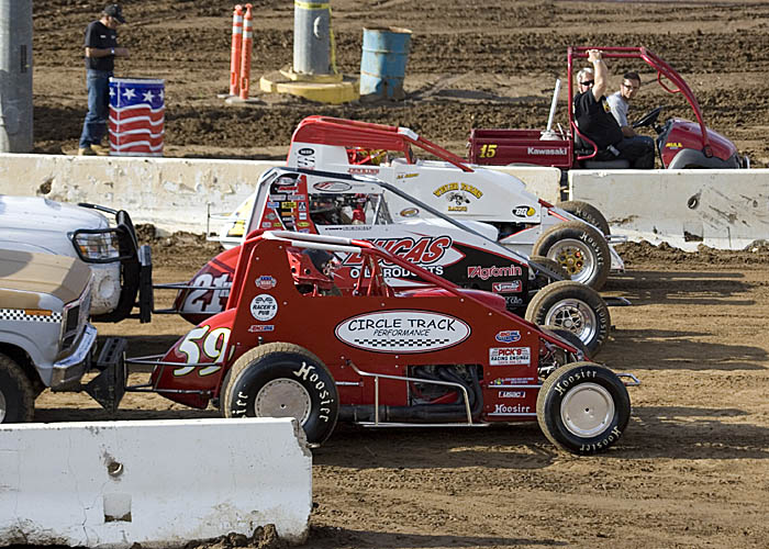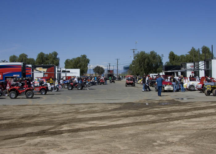 Pit area back from the track that's asphault and used when rain has flooded the pits.