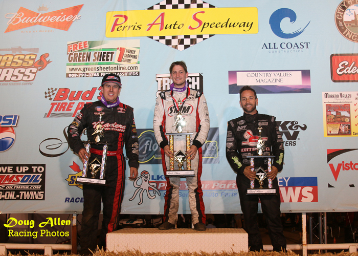 Podium of Mike Spencer, winner Justin Grant and Damion Gardner