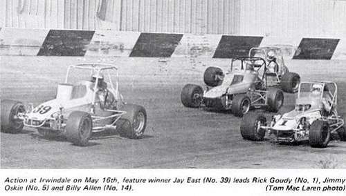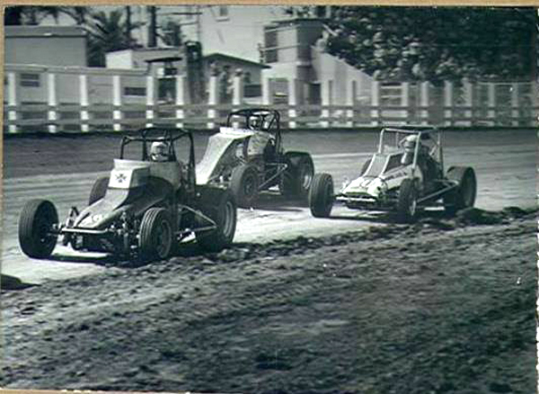 Jay leading Rick Goudy, Jimmy Oskie and Billy Allen at Irwindale paved track
