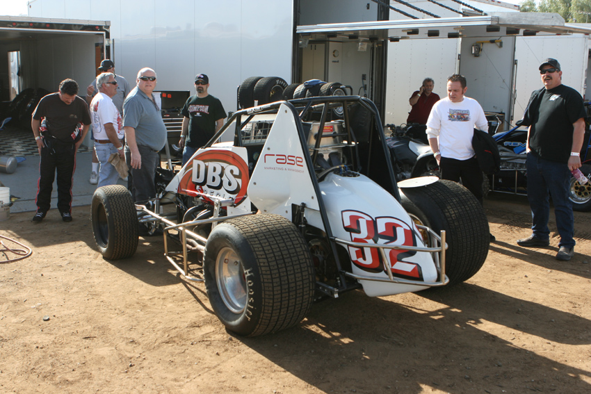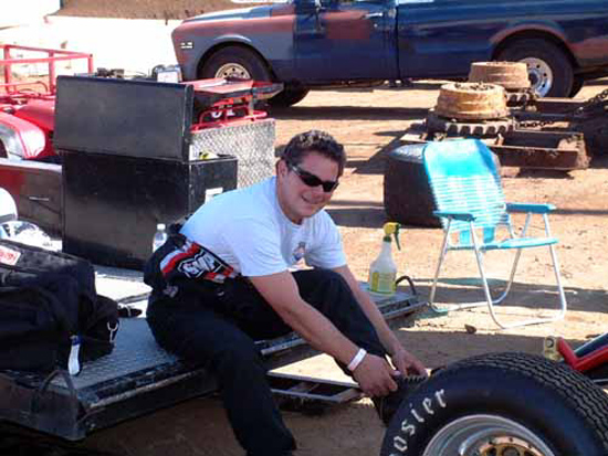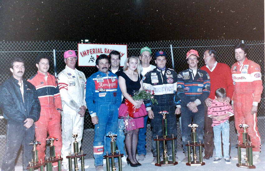 Jordan and drivers at Imperial Raceway's Quaker State Classic with USAC National Midgets