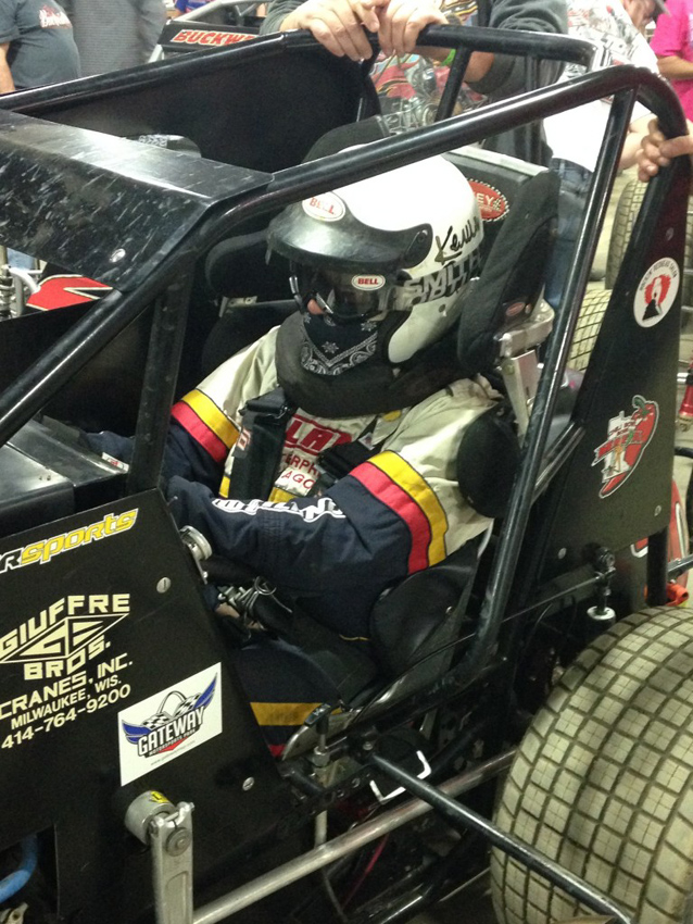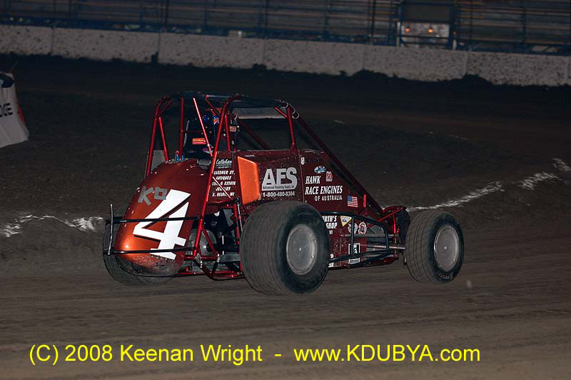 K O after winning 50 lap feature at Angel Park