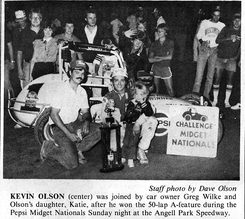 KEVIN OLSON: USAC HALL OF FAME CLASS OF 2016 Kevin Olson, of Loves Park, Ill., won USAC National Midget championships in 1982 and 1987 and captured 23 victories during his USAC career. Among his victories were wins in the 1983 Turkey Night Grand Prix and the 1996 Hut Hundred. He is a five-time Badger Midget Auto Racing Association (BMARA) Champ and also won the prestigious “Pepsi Midget Nationals” at Sun Prairie, Wisc. five times! Olson has more recently been involved in motorsports broadcasting and has worked on the team at the Indianapolis Motor Speedway. Kevin was inducted into the National Midget Auto Racing Hall of Fame in 1997.