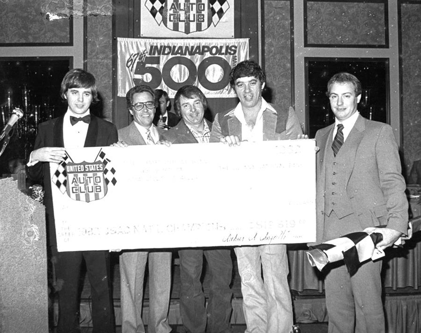 K O with Dean Roper, George Snider, Sheldon Kinser and Kenney Schrader at 1982 USAC Banquet