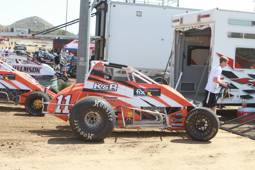 AJ rolling under # 4 AJ and his Brother Bobby started out sharing two cars, one with a 360 and one a 410. They would switch each week until Bobby Moved to another city for work. After that AJ drove the 410 most of the time.