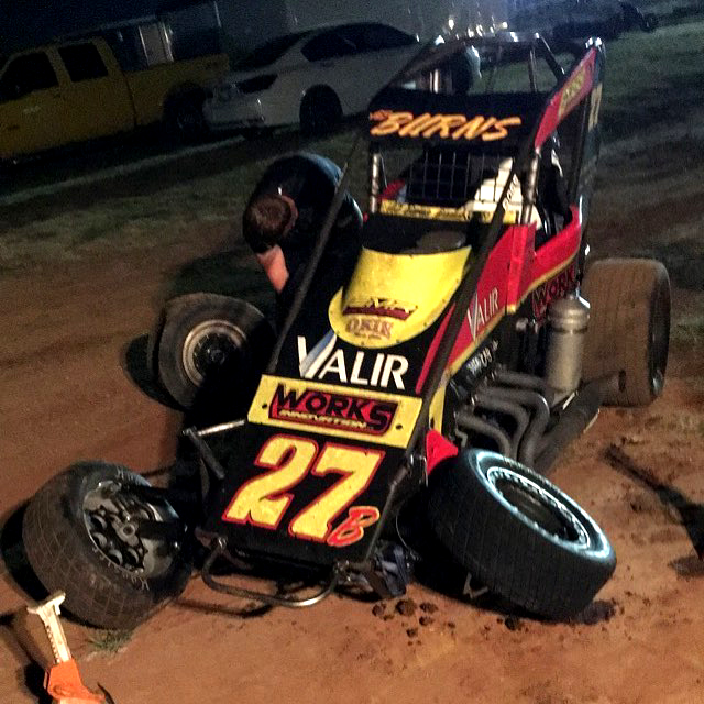 Burns started last in his heat race on Wednesday and finished sixth after avoiding a couple of wrecks that resulted in a car flipping.