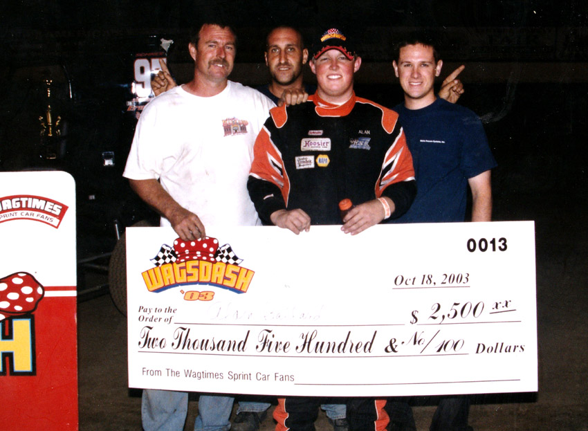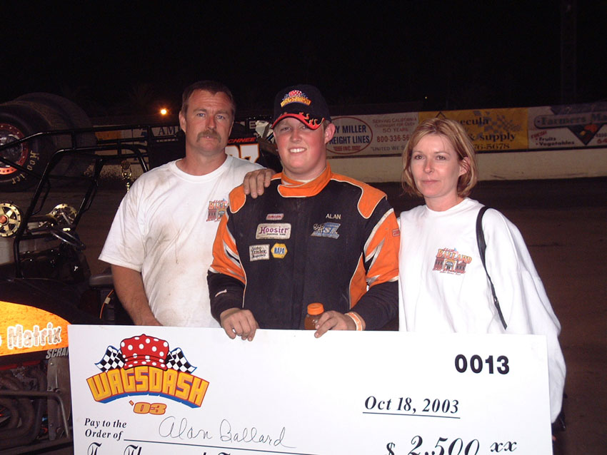 Alan was a hard charger who won the Wagsdash two times, in 2003 and 2006. On what I thought Was his best race of his career, besides the Wagsdash wins, was when he beat Damion Gardner at Ventura by passing him more than once and got a victory by less than a wheel on October 29, 2005. It was his only CRA win, but an exciting one. His grandpa bought him a big new hauler and his dad Ernie went with him to all the races, both working hard on the car. Alan could have won more races, but he retired too soon and went off to a real life.