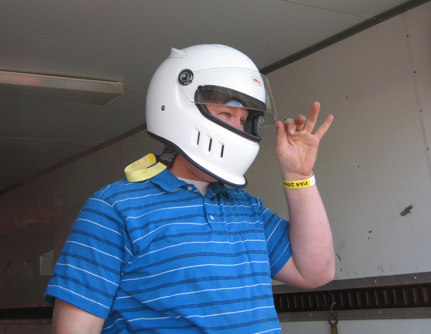 Alan polishing his helmet