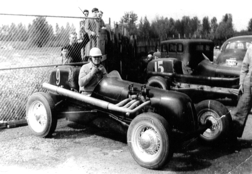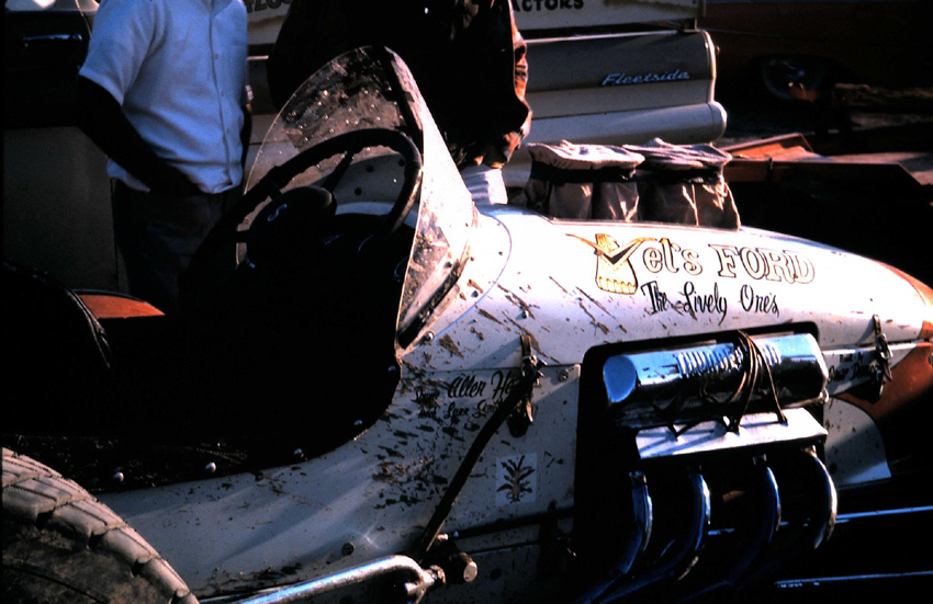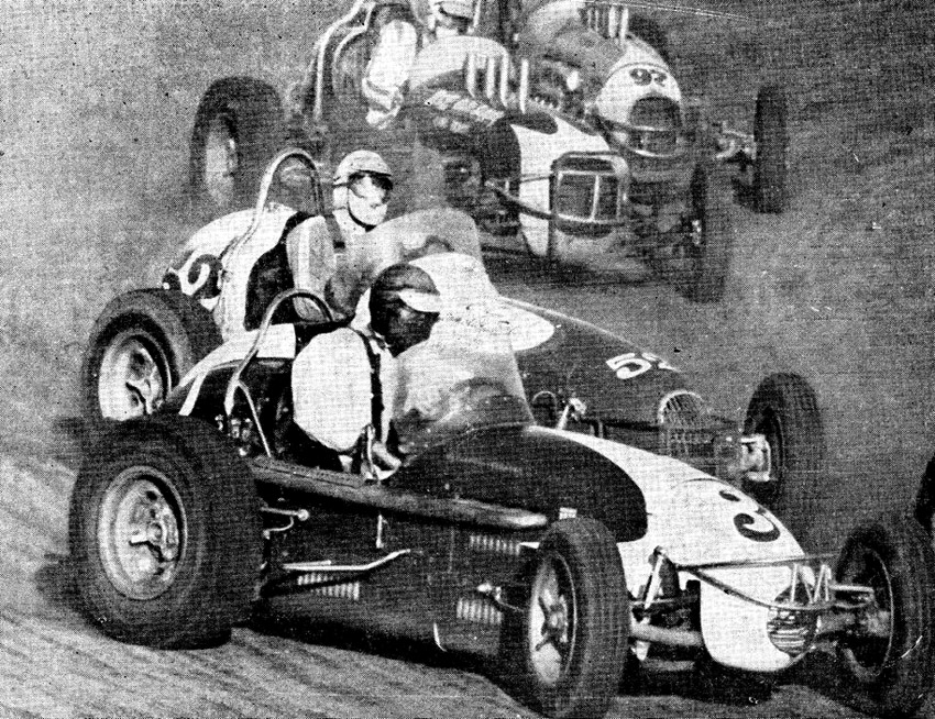 Allen in unpainter Bruce Bromme car on bottom and Jack Bruner in Pop Miller's car up top