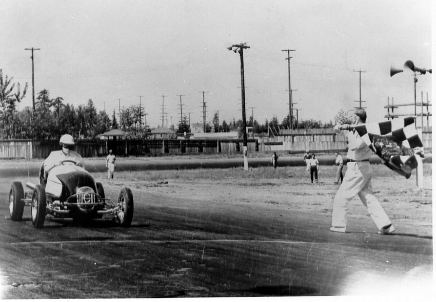 Allen in the Famighetti Special with Don Thomas in his roadster