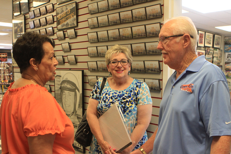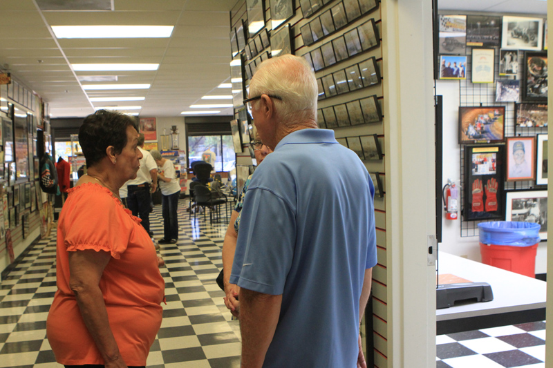 Dick Woodland , left, talks with Museum owner Steve Stroud.