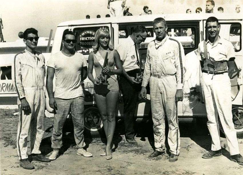Heat race winners Benny with Buddy Cagle, Miss National Jalopy, Harold Leep and Don Spreire