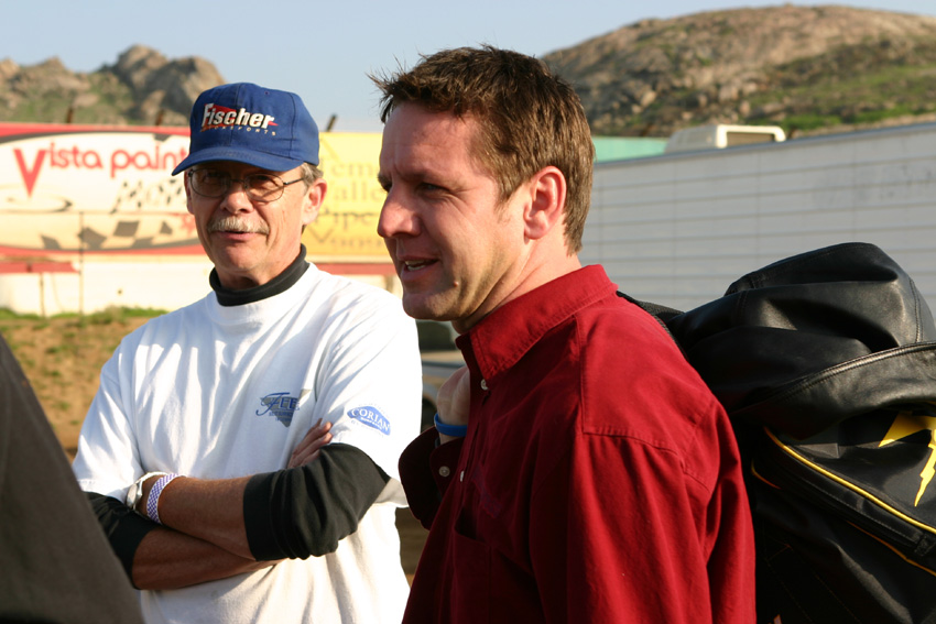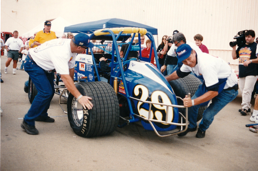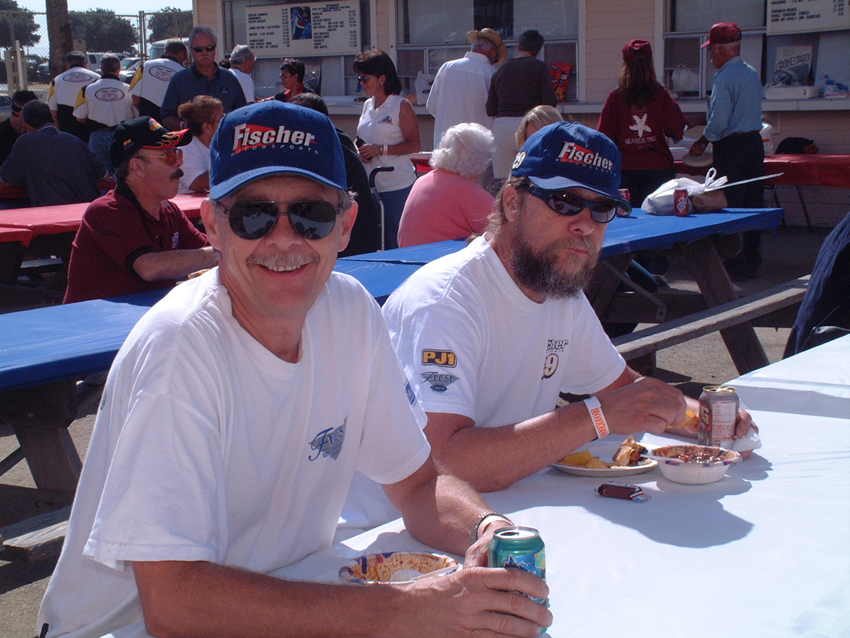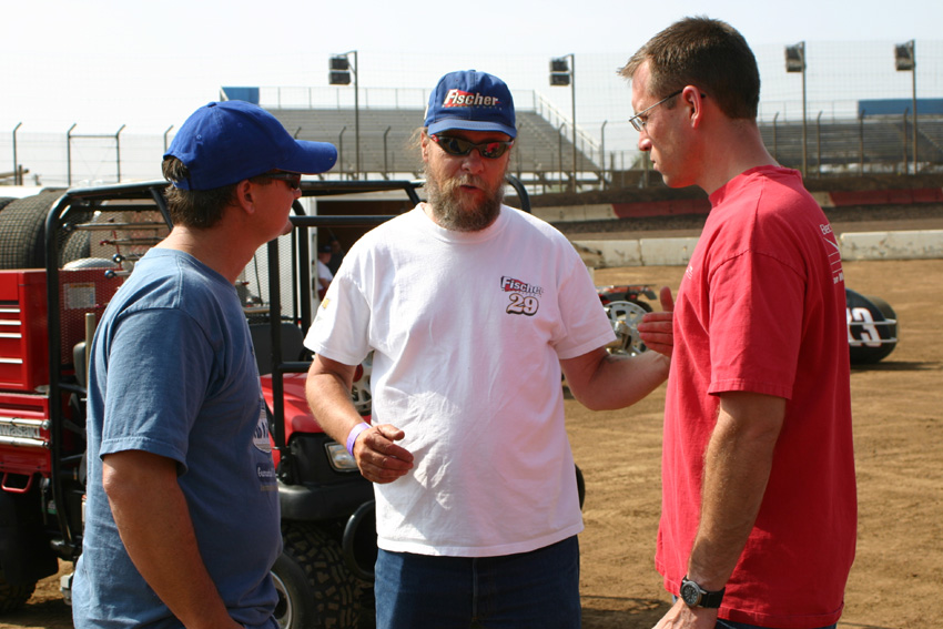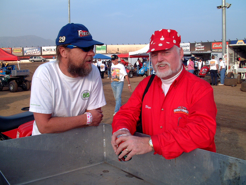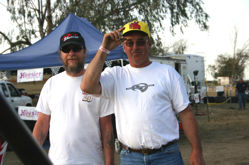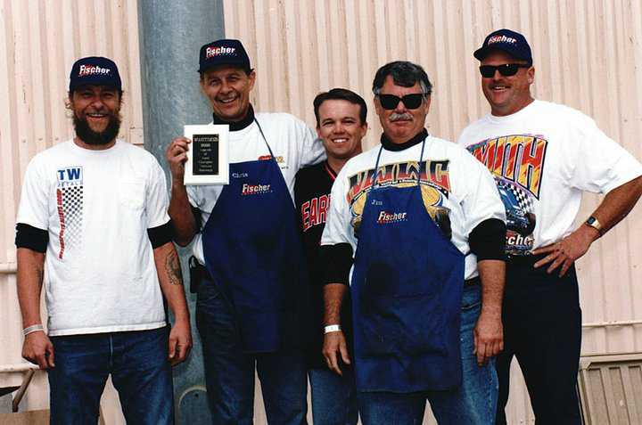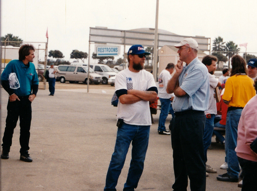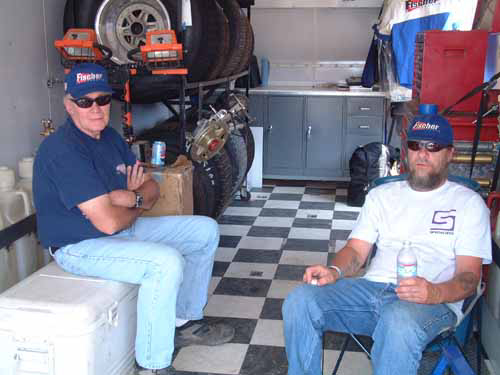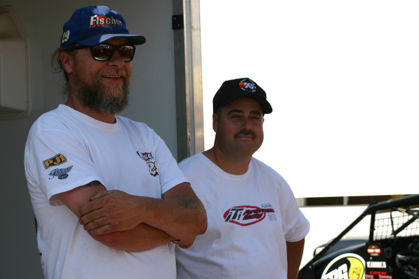 Biker Bruce and tire man Jim Wolfe with the Fischer # 29 car driven by Steve Ostling at that time