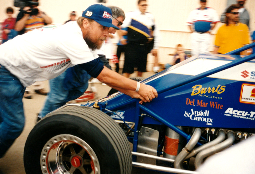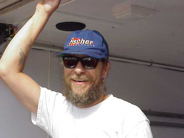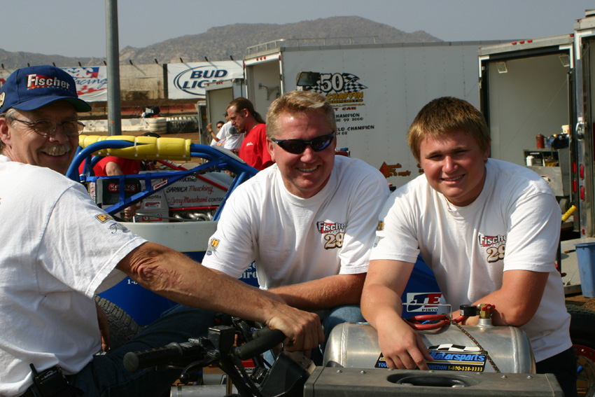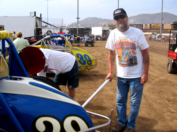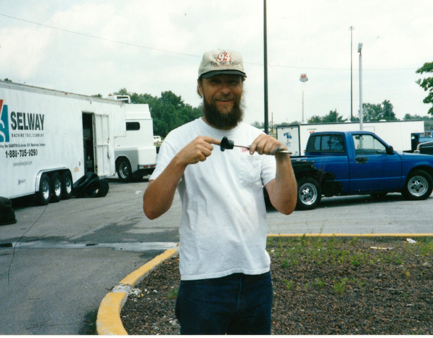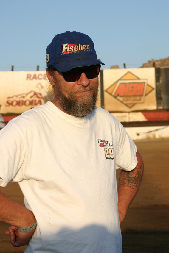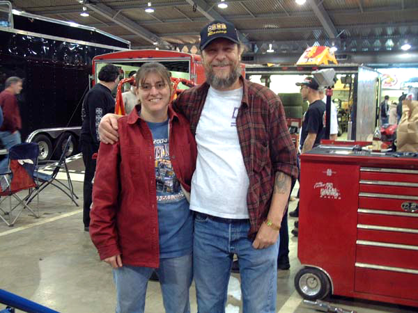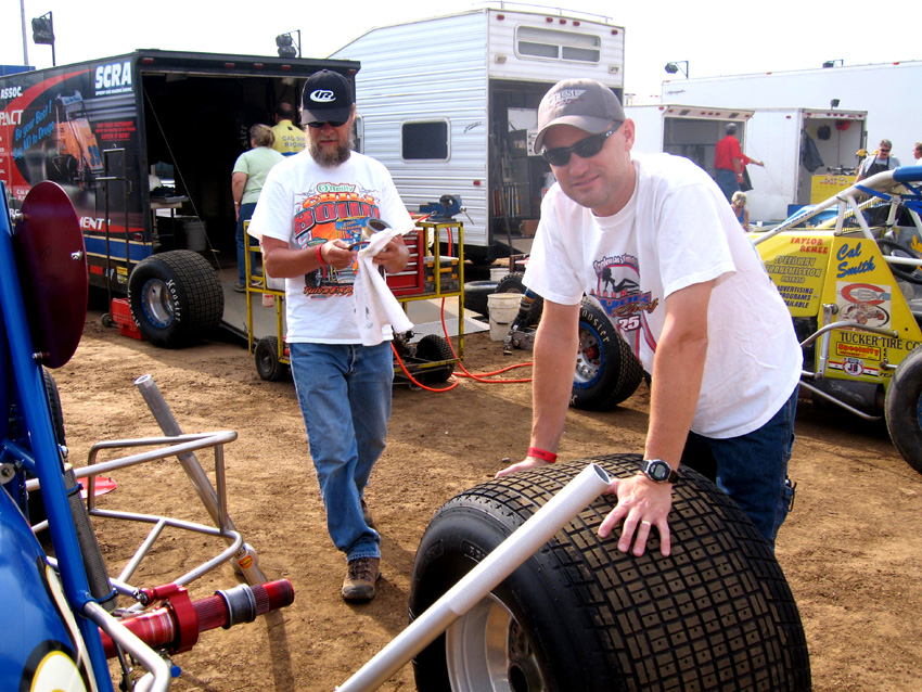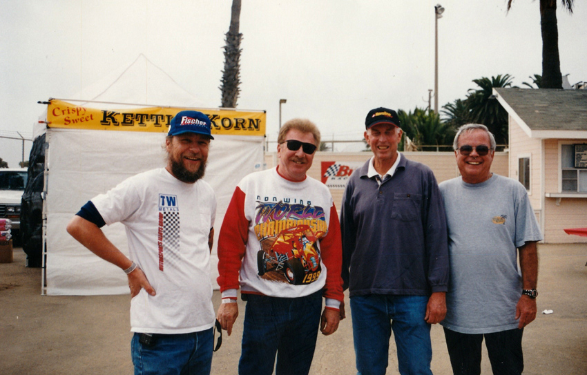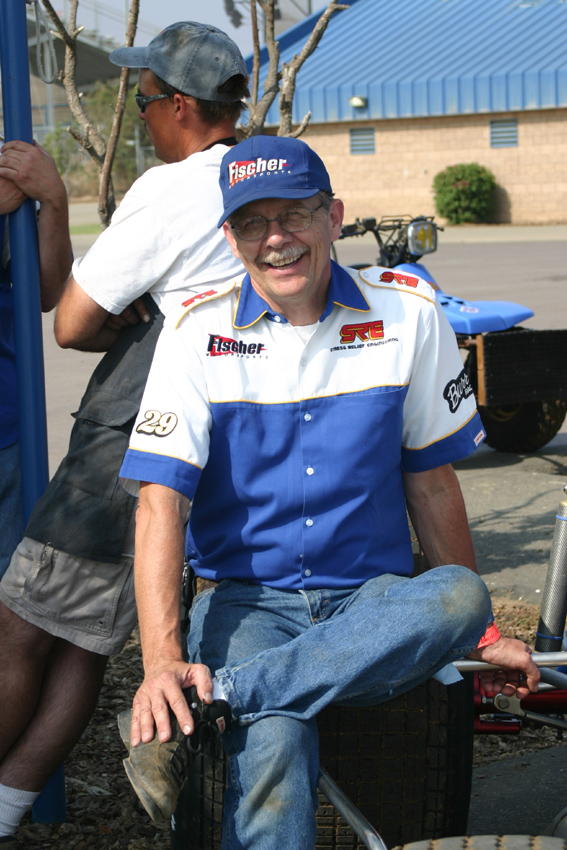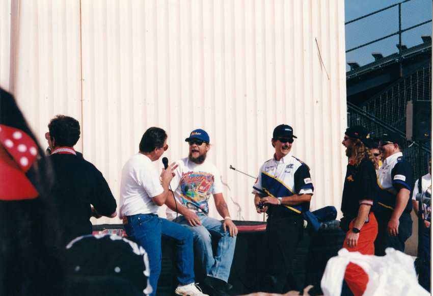Biker Bruce and tire man Jim Wolfe with the Fischer # 29 car driven by Steve Ostling at that time