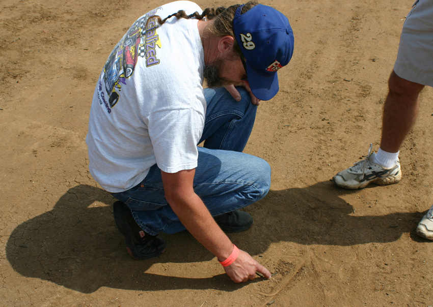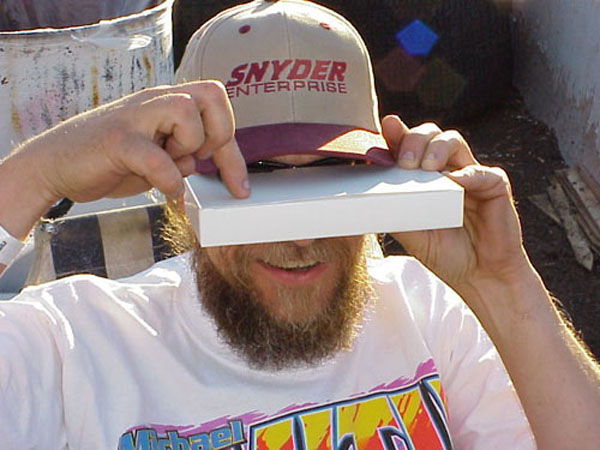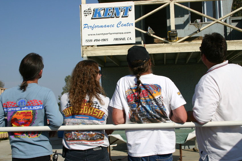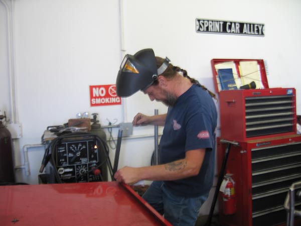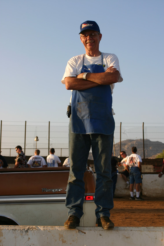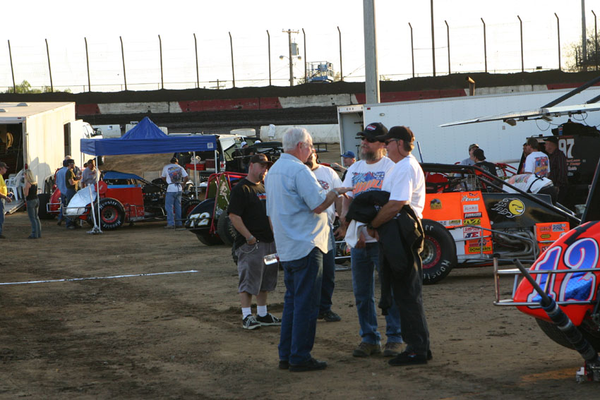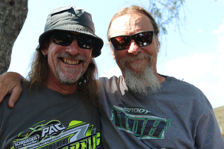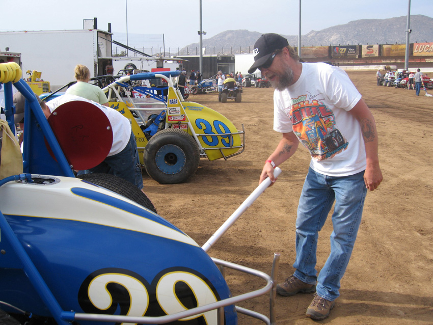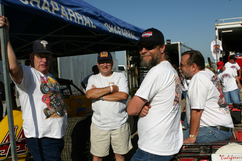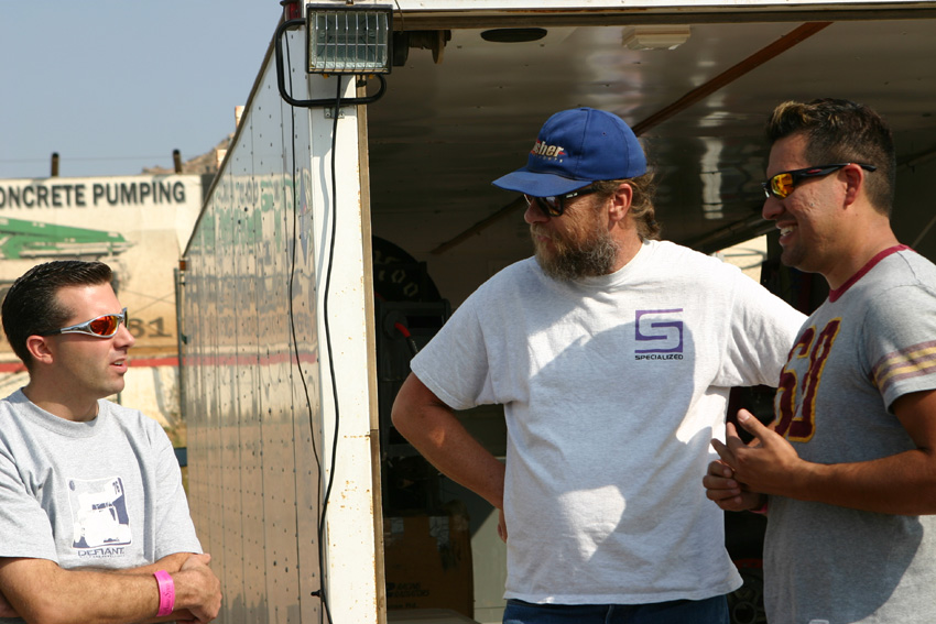 Biker Bruce and tire man Jim Wolfe with the Fischer # 29 car driven by Steve Ostling at that time