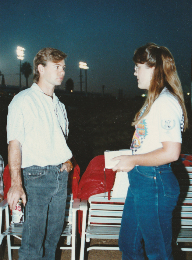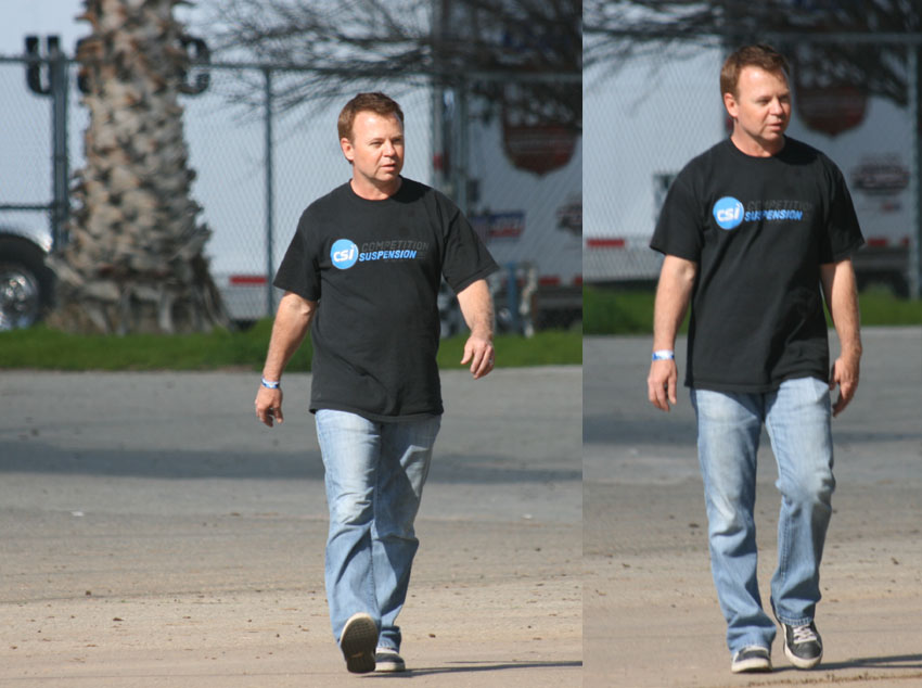 Billy walking the paved pits at Perris after a lot of rain caused the move to outside the track