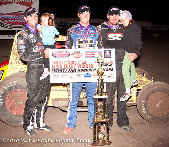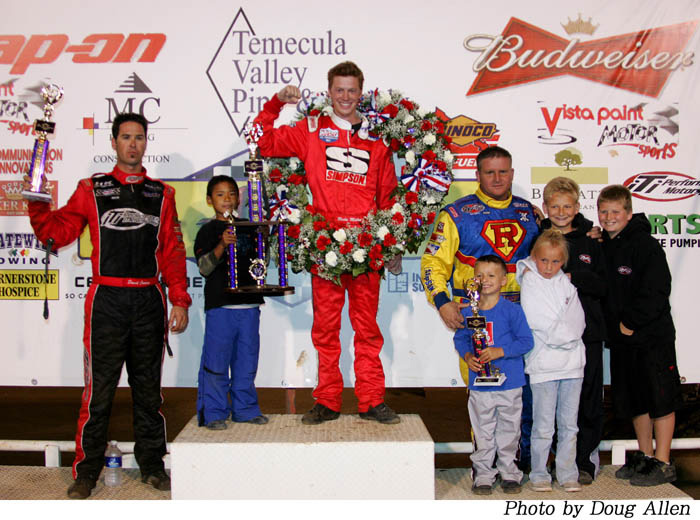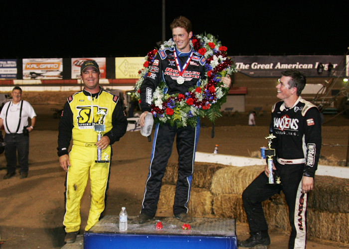 Blake on the podium with Kevin Swindell and Matt Mitchell