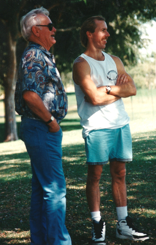 Bobby's dad with Skip Lee at Indian Dunes 1981