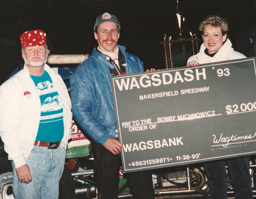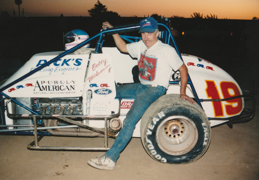 Bobby was the CRA rookie of the year when he started racing sprints. He has 3 CRA victories and ran some wings for awhile. He won the Wagsdash at Bakersfield chasing down early leader Gary W Howard and setting a Bakersfield track record for 30 laps. Bobby has been the Wagtimes T-shirt providor for many years making him a Wagtimes sponsor. He retired from sprints, took a break, then won in Focus sprints and now is the lightnig sprint champion. He ran the Chili Bowl for ears and is well known in So Cal racing. His success in lightning sprints is amazing.