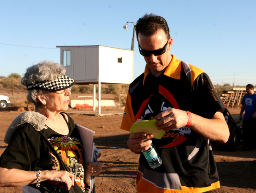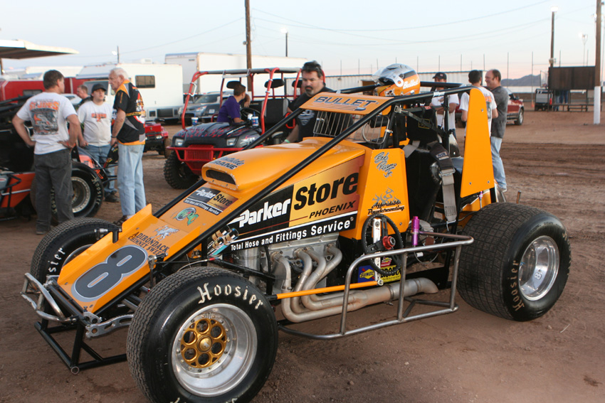 Bob is a tall sprint car driver with a big smile. He's popular with everyone and has had many years competing in the Arizona racing scene. He's fun to be around. And, he's won a lot of races!
