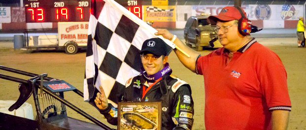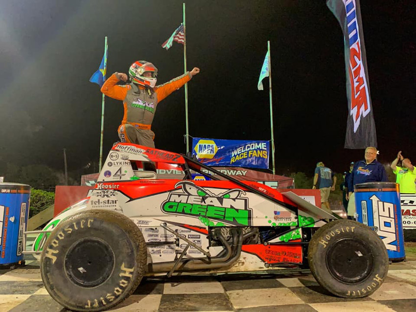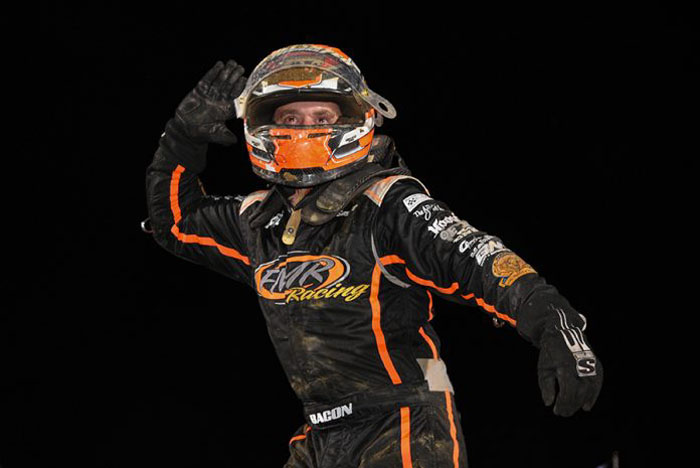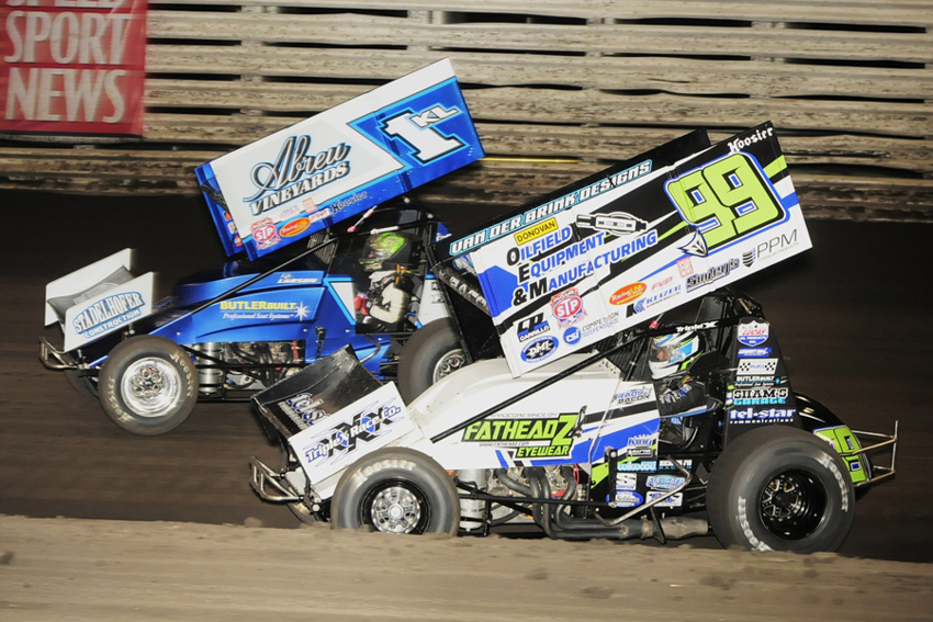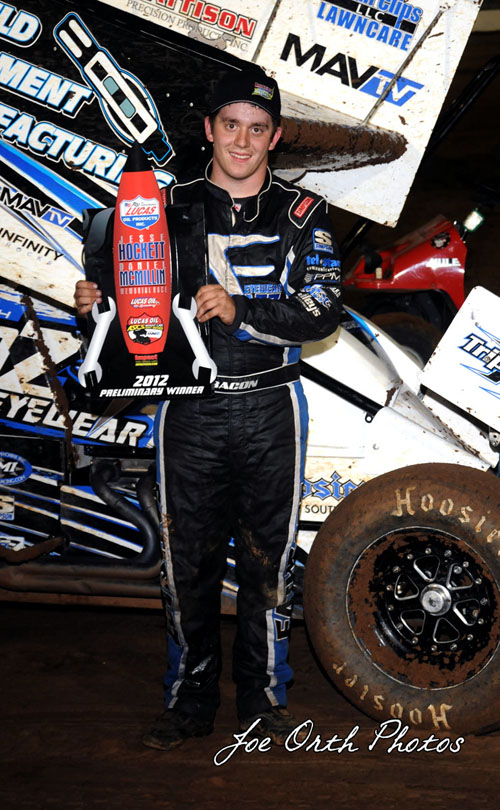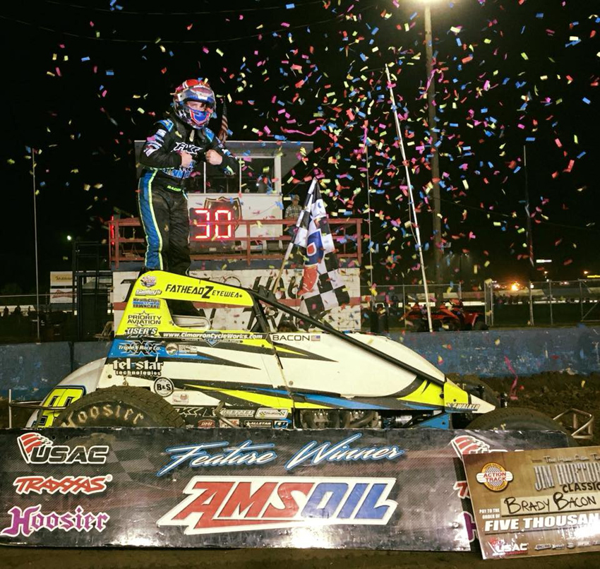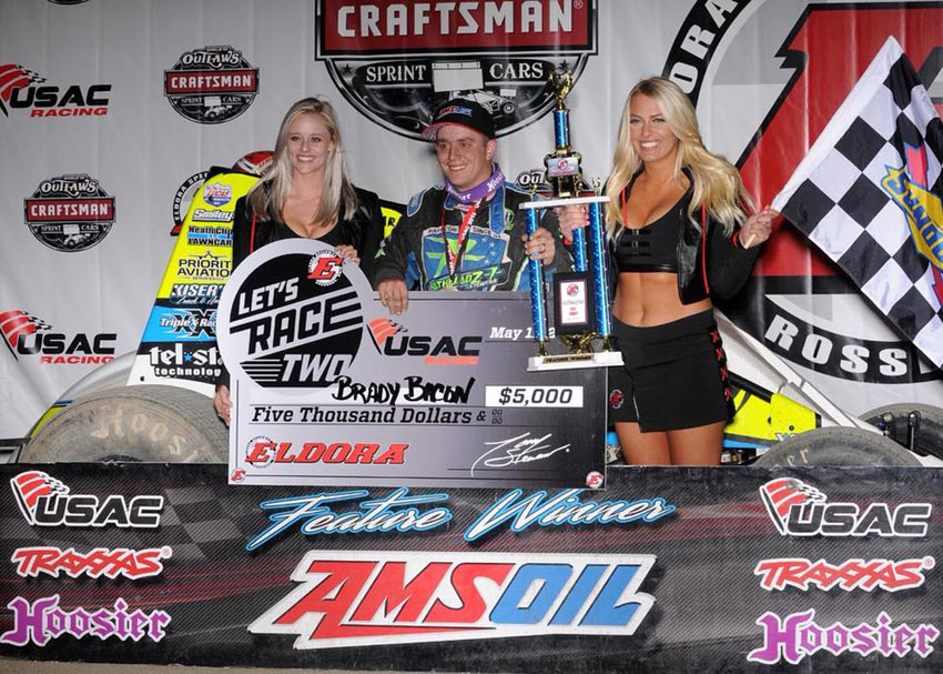 Brady with Kyle Larson and Tony Stewart at the Chili Bowl