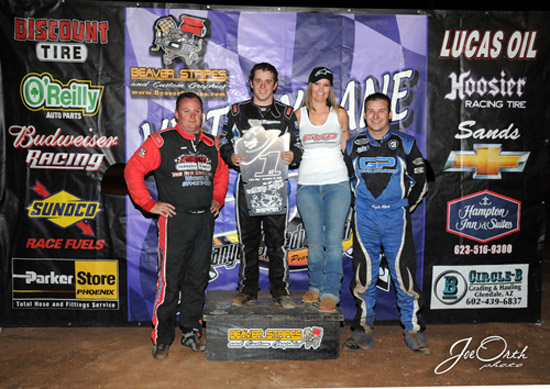 Brady on the podium with Kyle Hirst and Wayne Johnson