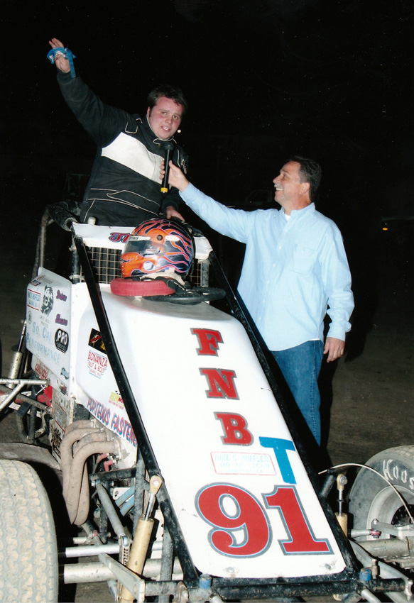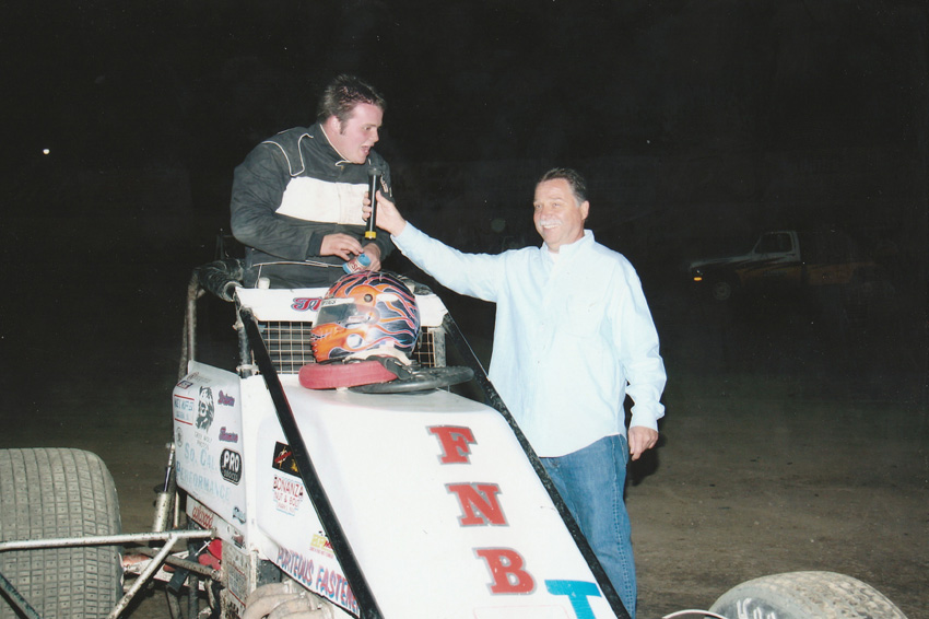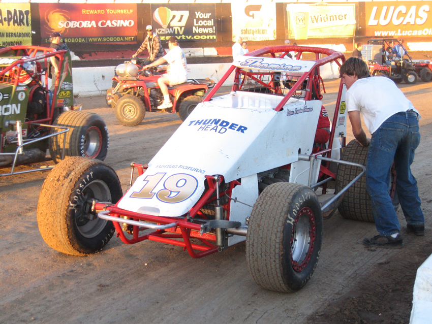 Brandon is very excited to drive a sprint car. He used to come to the track with an 18 wheeler truck and unloaded by using a small crane. His smile was brilliant, especially after climbing out of his car. He won a $5000 VRA race once, so he had the skills, but never got enough sponsoship to get better equipment. He os a good person.