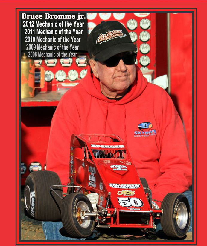 I have a lot of people in the pits who I have developed great friendships with, but there isn't anyone who demanded my respect more than Bruce Jr. He was a quiet leader, a free thinker and will always be a real winner. What he has accomplished will never be equaled, yet he was still just my friend Bruce when I saw him. He was always sharing his life and asking about mine. I don't know how long we will have Ron Chaffin's little red sucker racing with us, especially now that Bruce is gone, but I can't imagine going CRA racing without seeing the # 50 sprinter and having Bruce Bromme Jr turning the wrenches! Thanks for all the championships and great times your fans and I have enjoyed, unfortunately very sadly there will be no more.