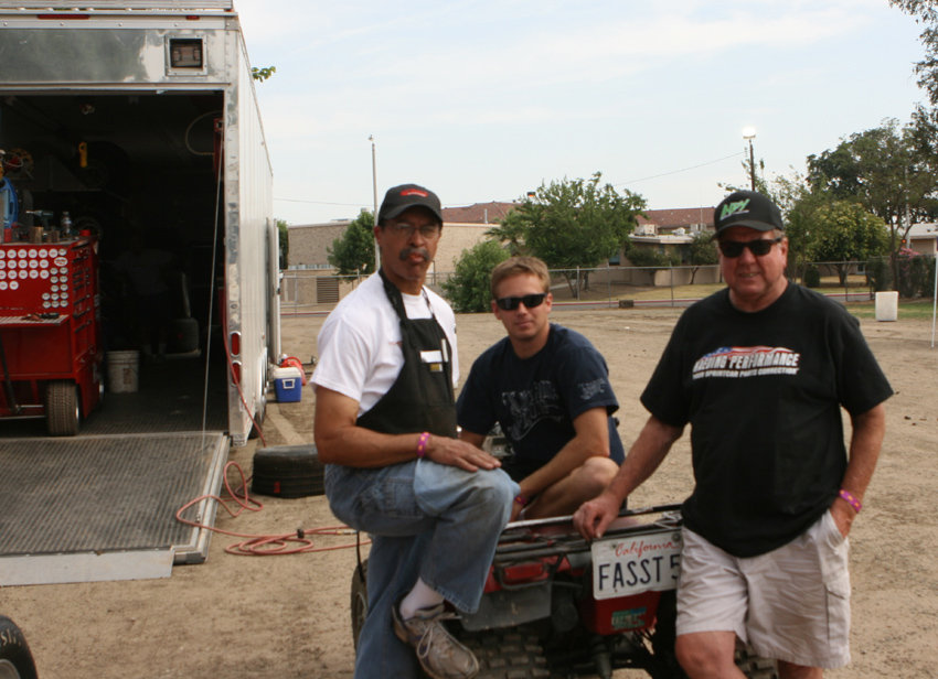Bruce Jr with two of his champion drivers Mike Spencer and Damion Gardner
