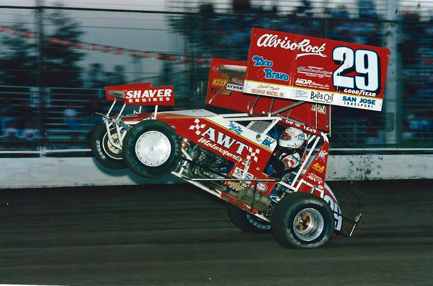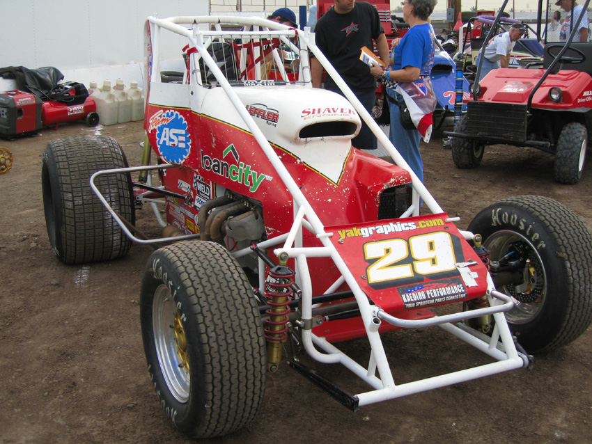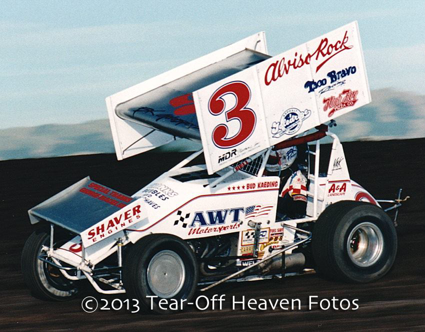 Bud has had a fun career driving both non wing and wing cars. He won 13 CRA races. He is a 3 time Oval Nationals champ plus he won the Western World, the Pacific Coast at Tulare and the Louie Vermeil Classic in 2013. He won a lot of races in Indiana, but don't have the number. He's still at it.