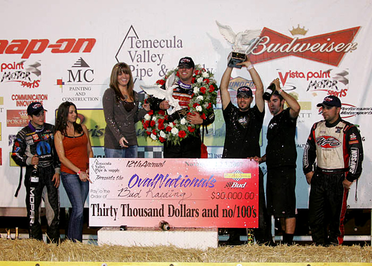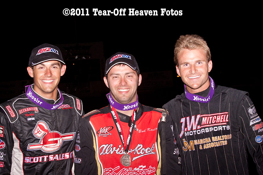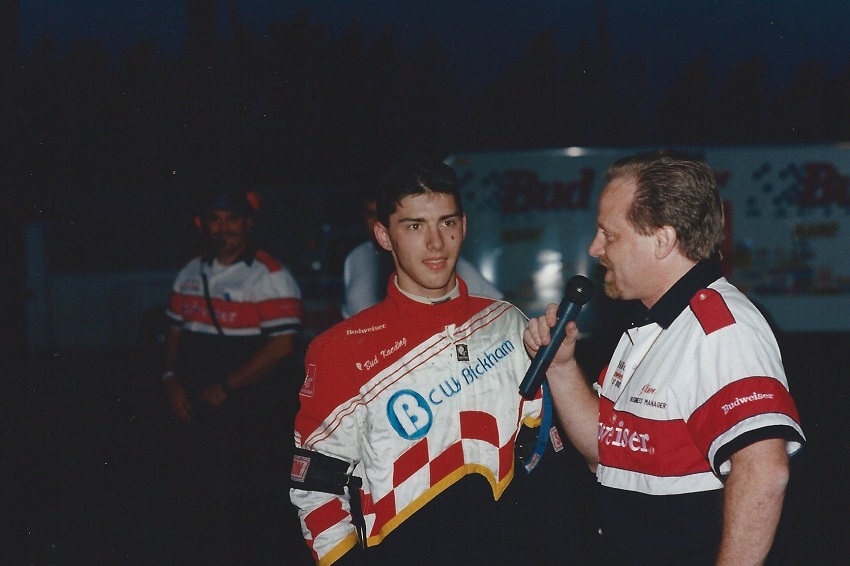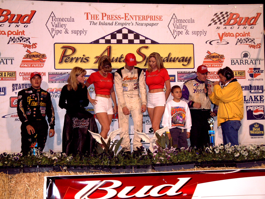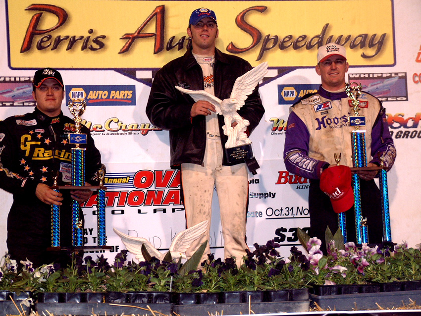 Bud winner with J J Yeley and Troy Rutherford on the podium