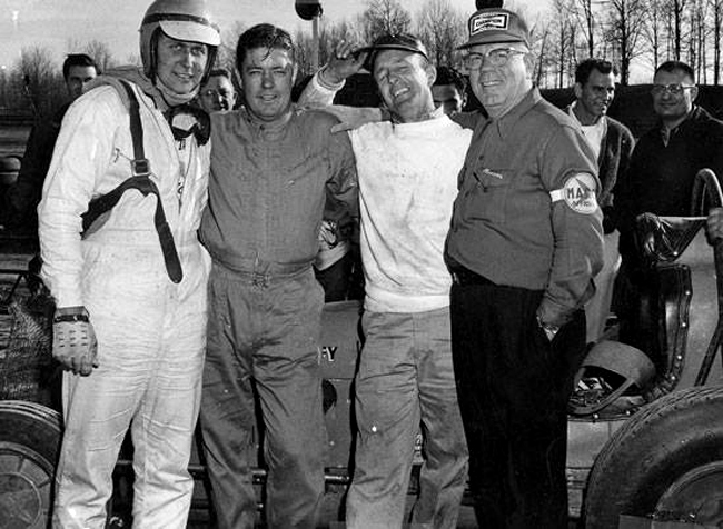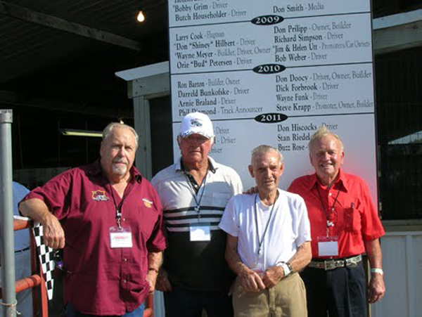 Buzz Rose, Jim McElreath, Dizz Wilson (all 3 in the NSCHF) and Official John Marcum at the 1st ever race at Eldora
