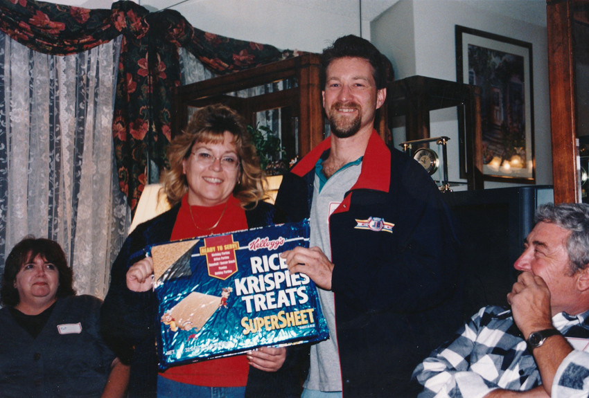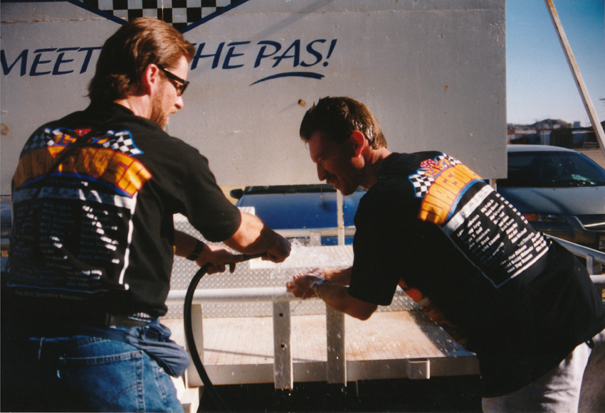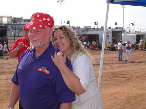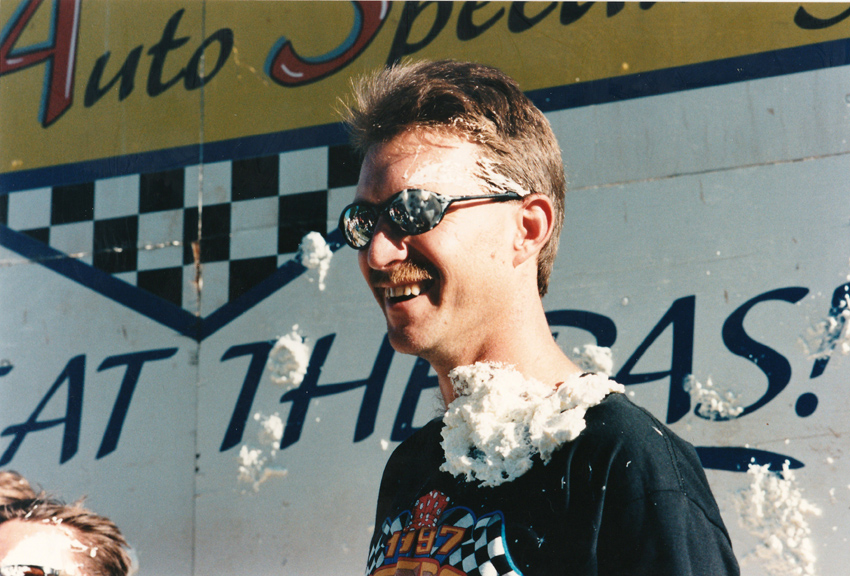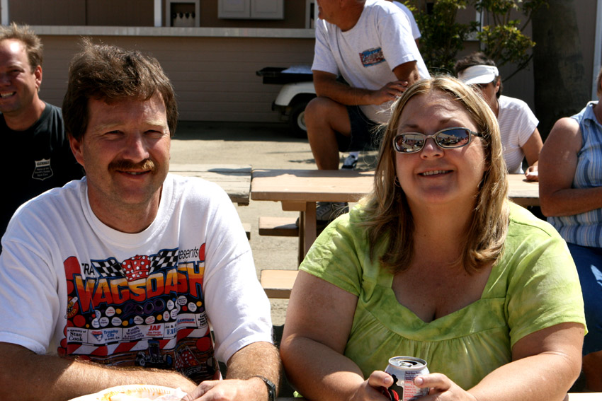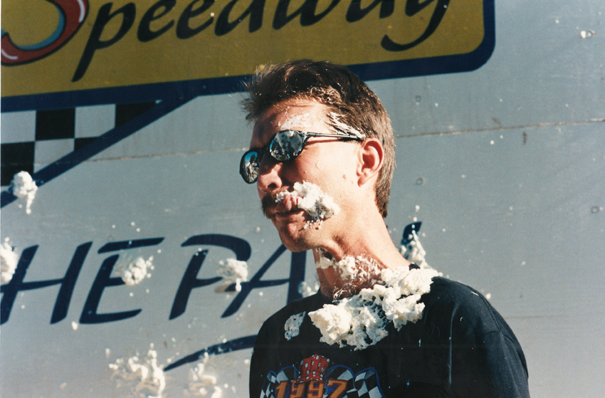 Cal suffered in one of my wild ideas, the pie in the face theory to make money for the racers. $1 a crack and the lines got longer when I was asked by the racers to step up. I did and I've never been stickier.