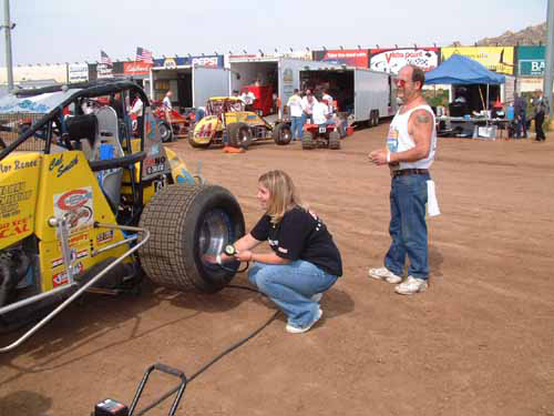 Steph working on a tire