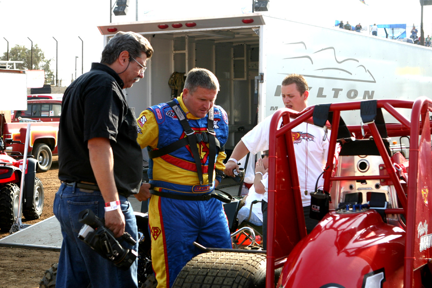 Chet and Ronnie Gardner walking the Chili Bowl pits
