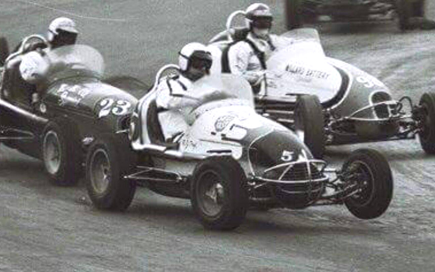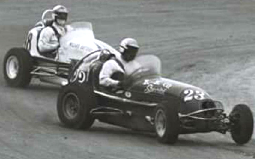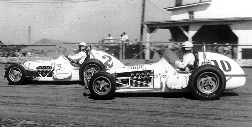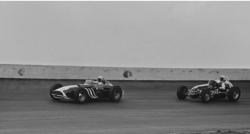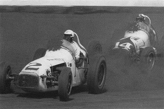 Chuck leading Parnelli Jonesat Ascot on the 1/4 mile track