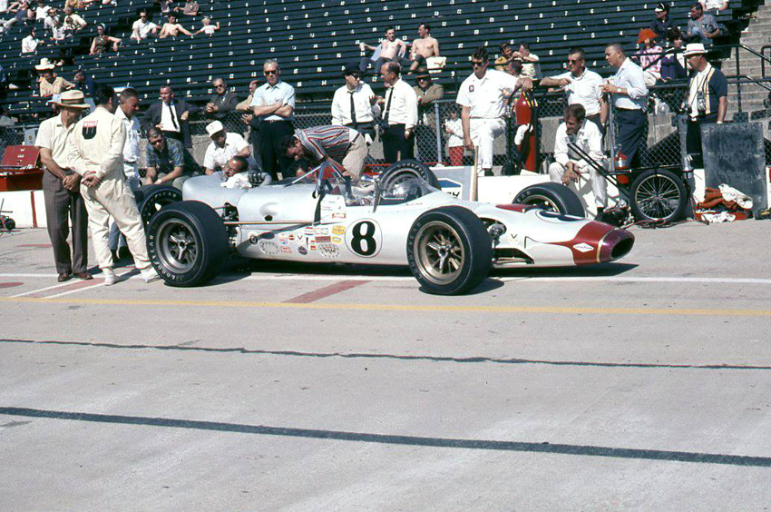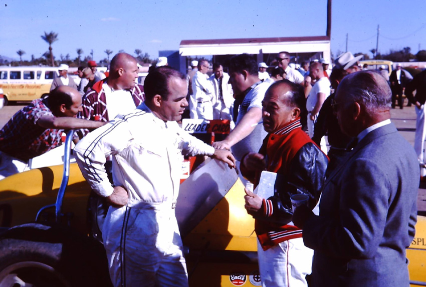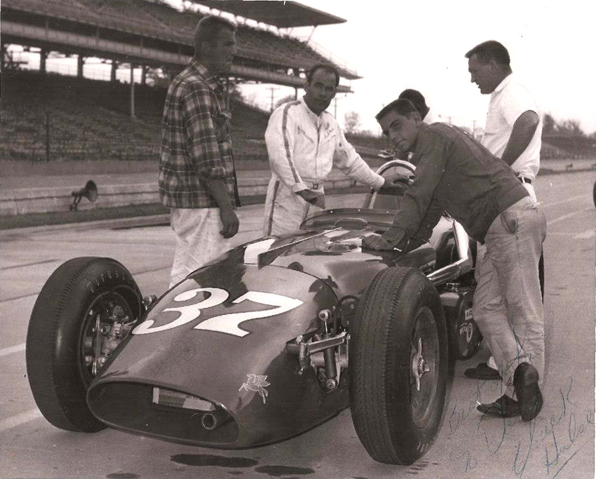 Chuck left next to Johnny Rutherford lining up in the Bobby Bell Memorial 1963