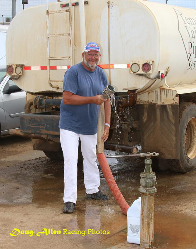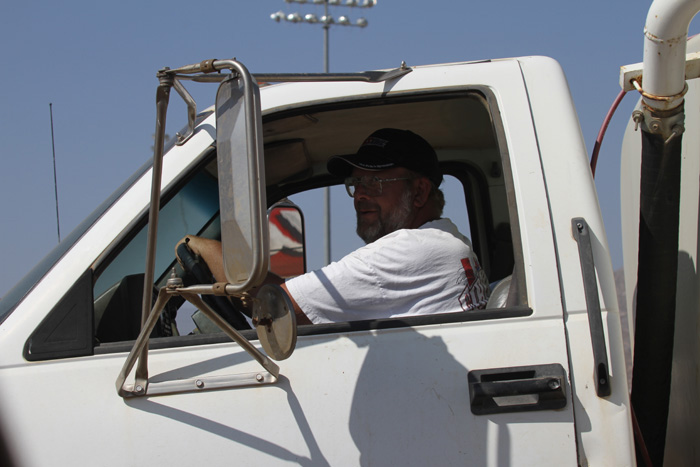 Coach driving the water truck