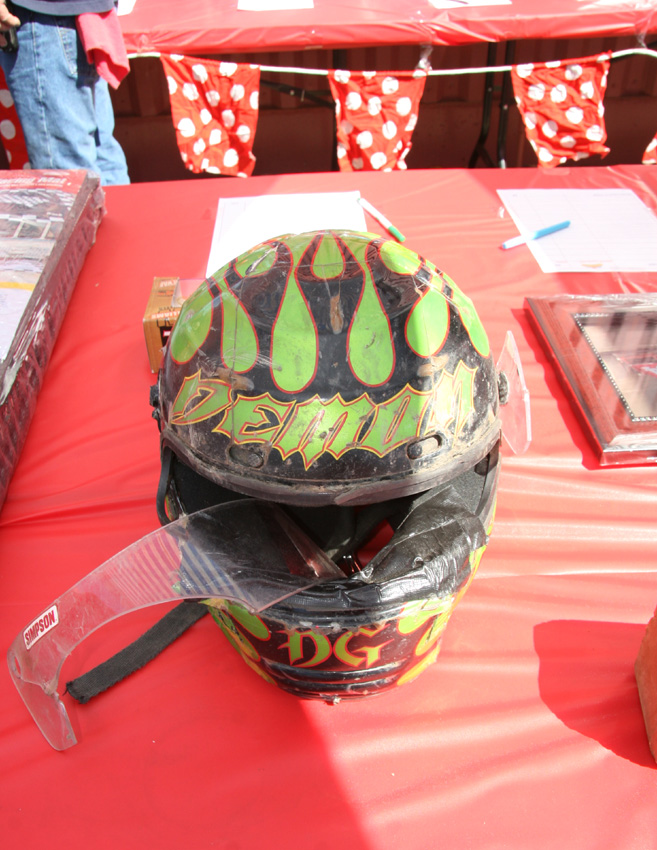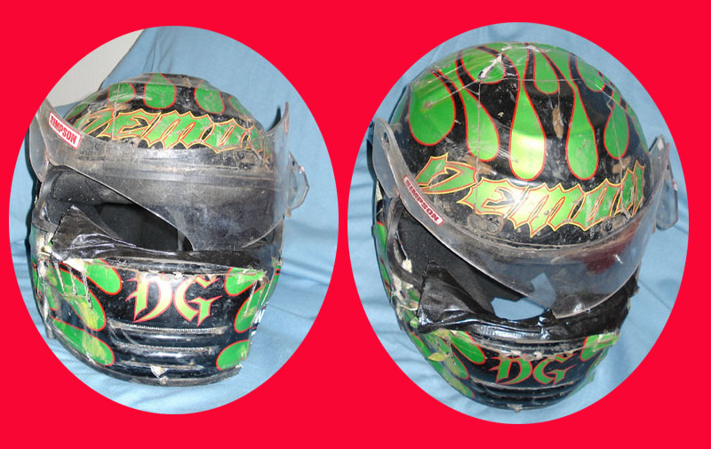 Damion's infamous helmet thrown in frustration at Ventura. The Wagsdash got $1000 at the auction for it. Rumor has it he got it back!