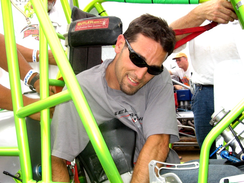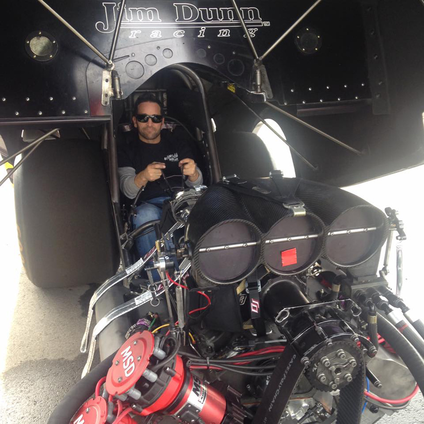 Damion in the seat of a Fuel Funny car of Jim Dunn Racing
