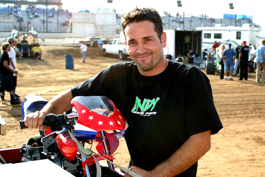 Damion with the mini-bike from Mike Kirby I auctioned off for Wagsbucks